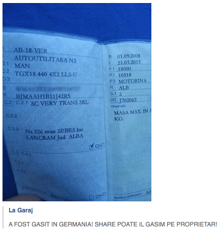 De cealalta partea, in cazul talonului gasit in Germania ma intreb cat de greu poate sa fie, tinand cont ca vorbim de o masina inmatriculata pe o societate comerciala, sa bagi numele firmei in Google, sa-i aflii numarul de telefon al responsabilului, sa-l suni si sa-i spui: uite domne’ ti-am gasit talonul, hai sa ti-l dau.
