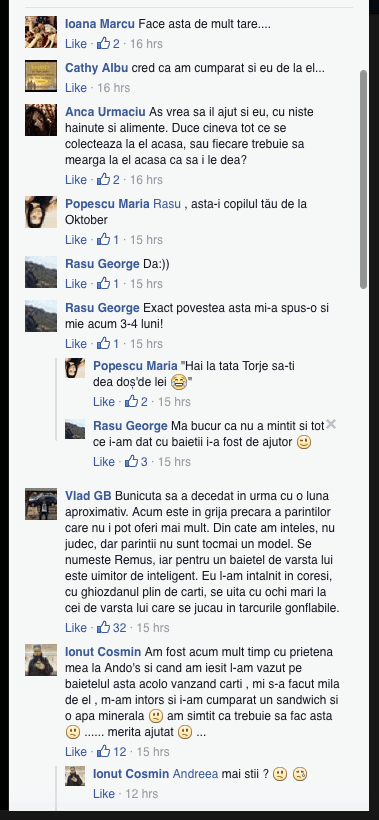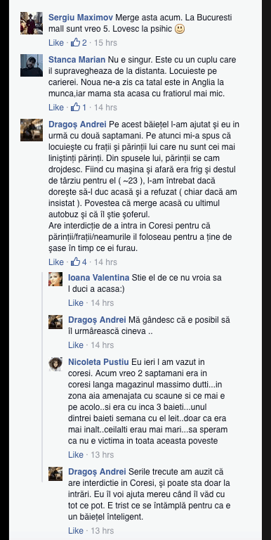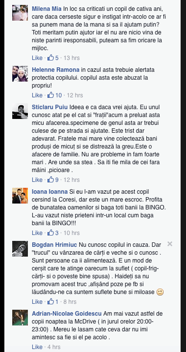 - Toti comentatorii care au spus ca i-au cumparat mancare si apa nu au mentionat vreodata faptul ca s-au lovit de un refuz, cum se intampla destul de des in cazul celor exploatati pentru cersetorie.