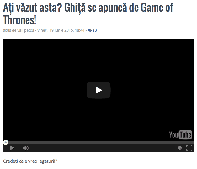 Atat Arhi cat si Zoso au publicat exact aceeasi postare cu acelasi titlu, acelasi video si aceeasi intrebare sub video. Pentru ca da! totul a fost spontan, pur si simplu un blogger a vazut o reclama pe Youtube si s-a gandit s-o imparta cu cititorii. Nu, nu e publicitate de nici un fel si daca ambii au postat exact la fel e doar o pura coincidenta.