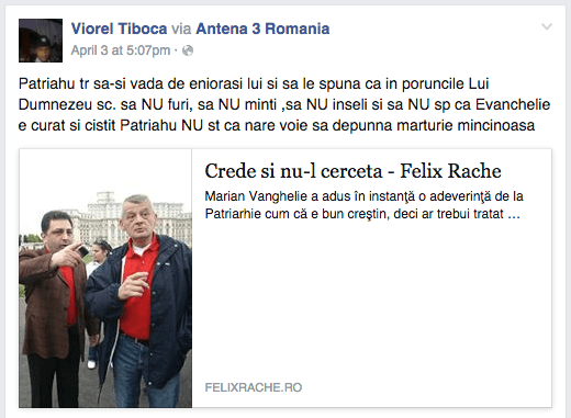Dar sa mergem mai departe fiindca postarile de pe wall-ul parieristului devin din ce in ce mai interesante. Pentru inceput Antena 3 Romania si comentariul aferent si agramat: