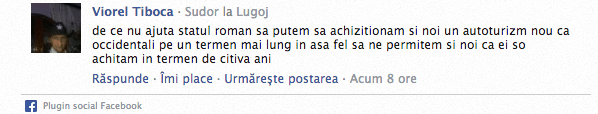 Astfel omul acesta isi pune intrebarea de ce anume nu-l ajuta statul roman sa-si ia un autoturism nou pe termen lung ca sa-si permita si el s-o achite ca occidentalii in termen de cativa ani.
