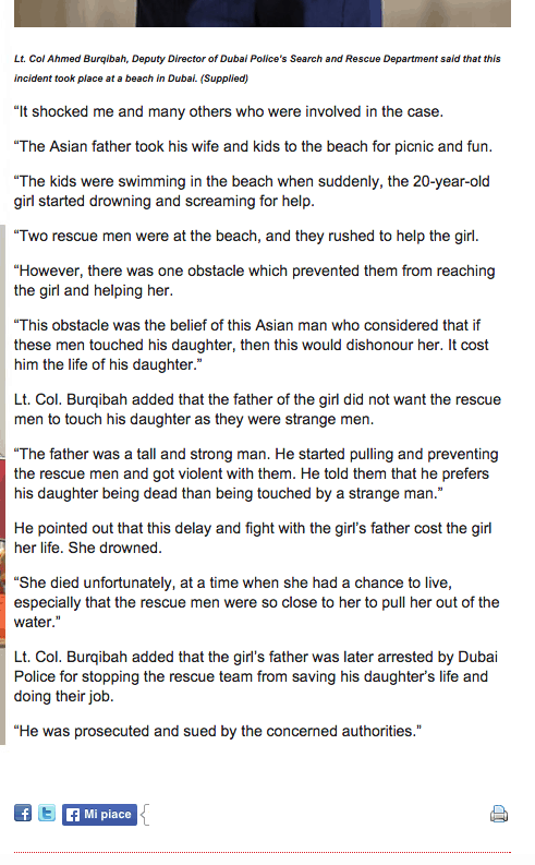 Data de aproape fiecare gazeta pe care-o citesc si data macar sub forma de link/share pe social media de o serie de bloggeri pe care-i urmaresc, stirea despre tatal care si-a lasat fata sa se inece pentru ca nu voia sa fie ‘intinata’ de atingerea salvamarilor e veche din 1996.