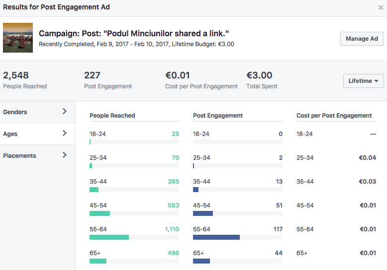 Asa ca am dat articolul asta pe Facebook si l-am promovat pe niste parametri demografici mai speciali.