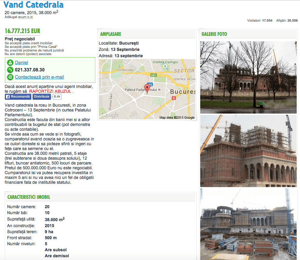 Si pentru asta a postat un anunt online pe care l-am salvat fiindca sunt constient c-o sa fie sters mai devreme sau mai tarziu: