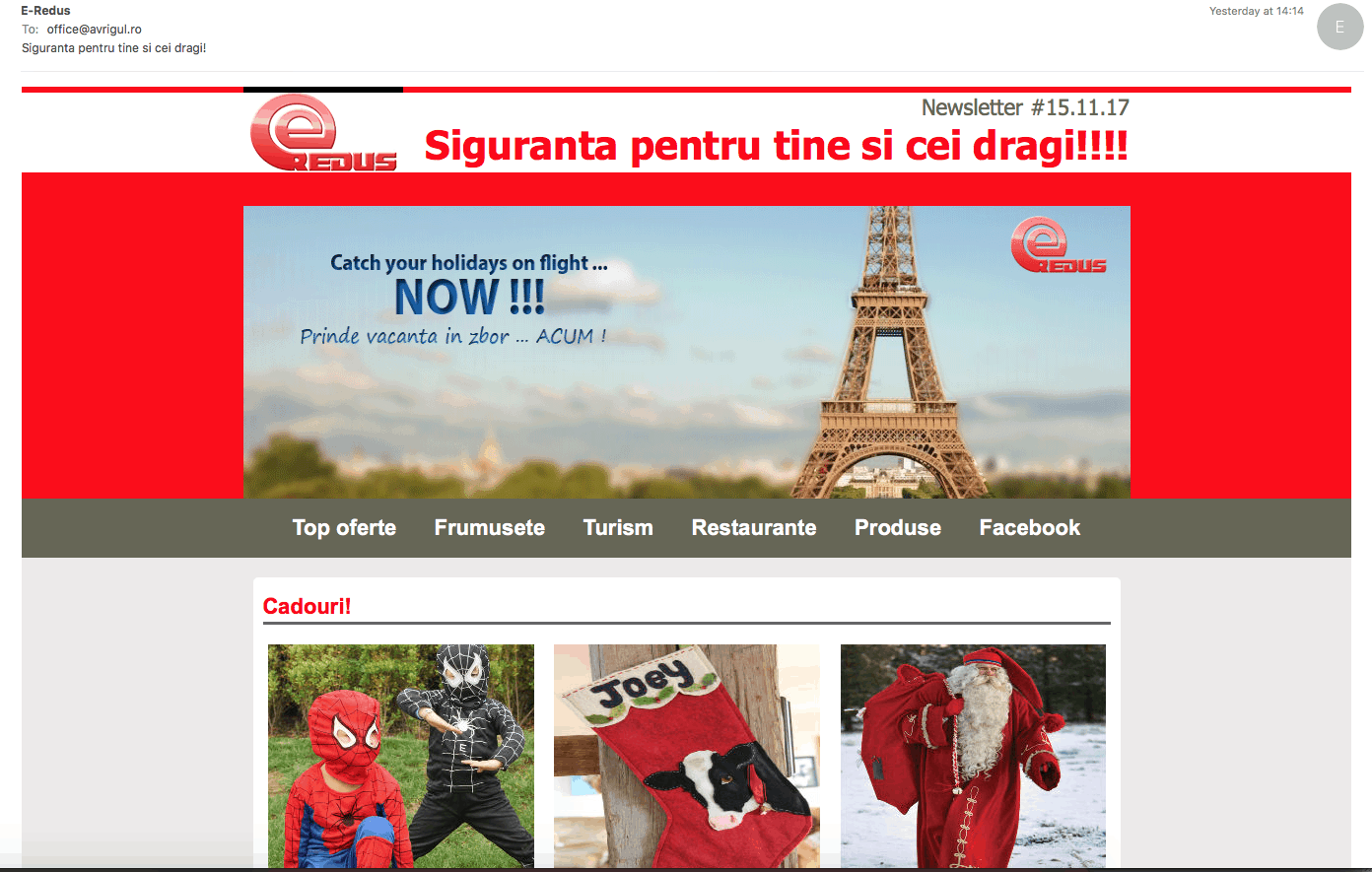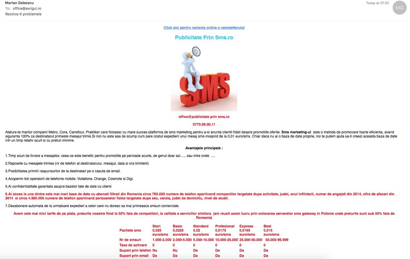 Cateva exemple de spamuri primite pe email aveti mai jos: