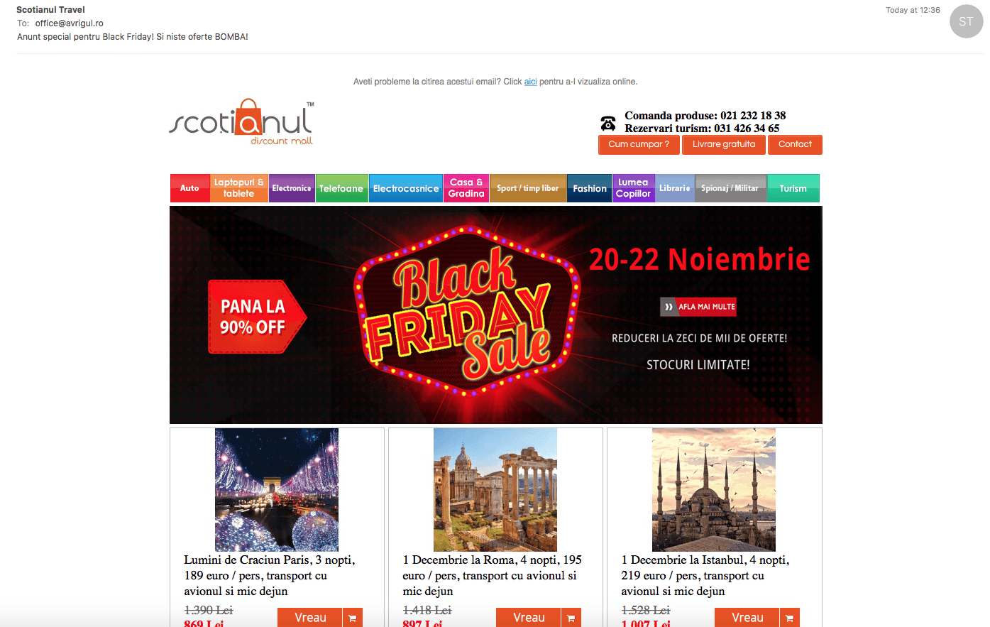 De cel putin 2 ani, luna noiembrie a devenit sinonima cu spamul masiv. Si daca spamul s-ar rezuma doar la emailuri n-ar reprezenta un ‘deranj’ prea mare, insa aparent de cand intram in luna Noiembrie retele de social media precum Facebook sau Twitter se umplu de ‘milionari’ de internet care infecteaza grupurile si hashtagurile cu linkuri de afiliat, blogurile se umplu de ‘recomandari’ si ‘reviewuri’ cu linkuri de afiliat, iar cei mai cei dintre bloggeri se grabesc sa dea in exclusivitate cataloage de black friday pentru fel de fel de magazine.