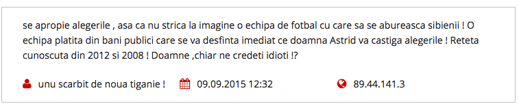 Ieri am citit pe siteul Tribuna o stire aparent banala pe care o redau mai jos:Am sarit repede peste informatia din articol pentru ca-i practic irelevanta (cel putin pentru mine), dar de curiozitate am decis sa citesc si comentariile, pentru ca adeseori sunt mai interesante si mai coerente si am dat peste urmatorul comentariu: