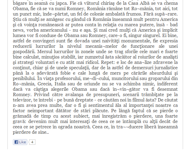 Astfel am dat azi peste urmatorul articol, scris ce-I drept coerent si la obiect, insa insotit de o gramada de “line breaks” cum li se spune in domeniu: