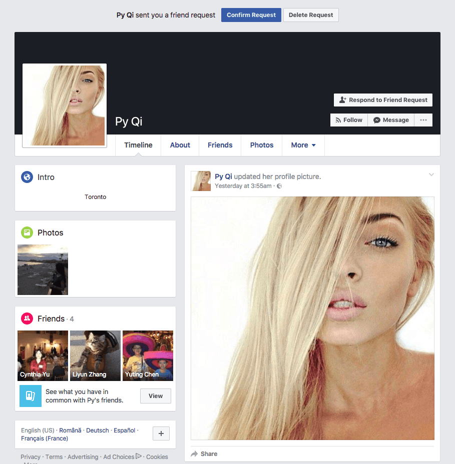 Iar asta din pacate nu e ultima gaselnita a Facebook, findca pe la finalul lunii aprilie cand cei de la Facebook se laudau ca au inceput sa lupte impotriva stirilor false si a spamului suspendand conturile false m-am trezit intr-o singura zi cu 7 solicitari de prietenie de la conturi false: